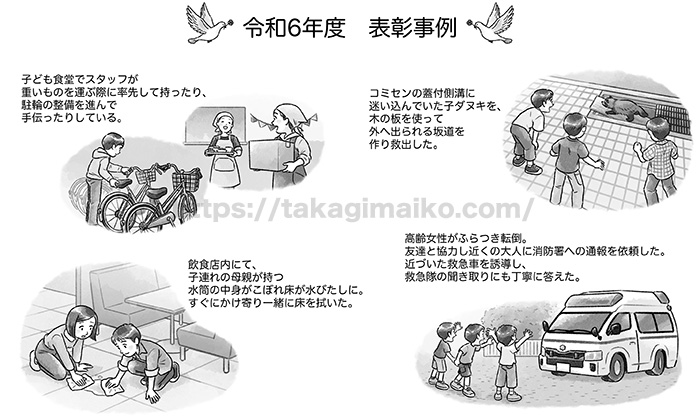 お仕事イラスト(広告) 令和7年度 青少年善行表彰ちらしデザイン(武蔵野市) 貴木まいこ 2025年6月30日 お仕事情報です。 武蔵野市役所様の、令和7年度 青少年善行表彰にて、「小鳩・けやき表彰募集」チラシの表面と裏面のイラストを描かせていただきました。 【表面】 【裏面】 2025年で7年目になります。ありがとうございました。 タグ)イラスト,人物,小学生,子供,鳩,鳥,生き物,自然,教育,学校,中学生 小学生 児童向け 動物 子供 風景 中学生 広告